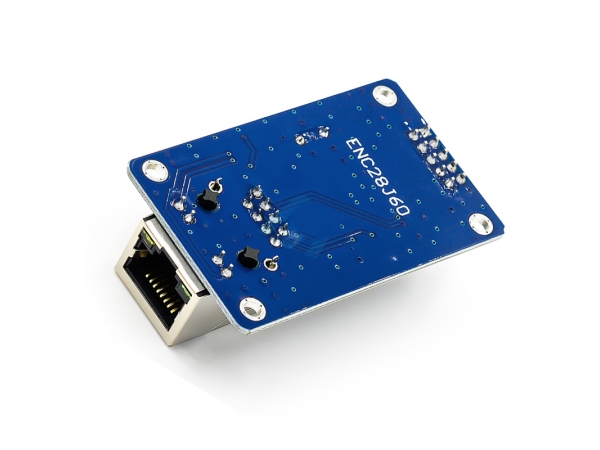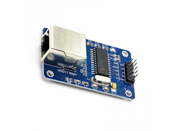 The ENC28J60 Ethernet Module uses the Microchip ENC28J60 Stand-Alone Ethernet Controller IC featuring a host of features to handle most of the network protocol requirements